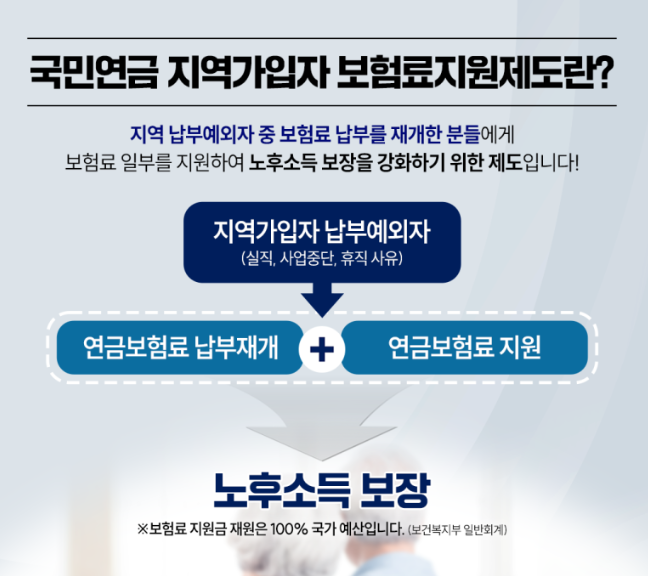 | 제도 개요 | 지역 납부예외자 중 보험료 납부를 재개한 분들에게 보험료 일부를 지원하여 노후소득 보장 강화 |